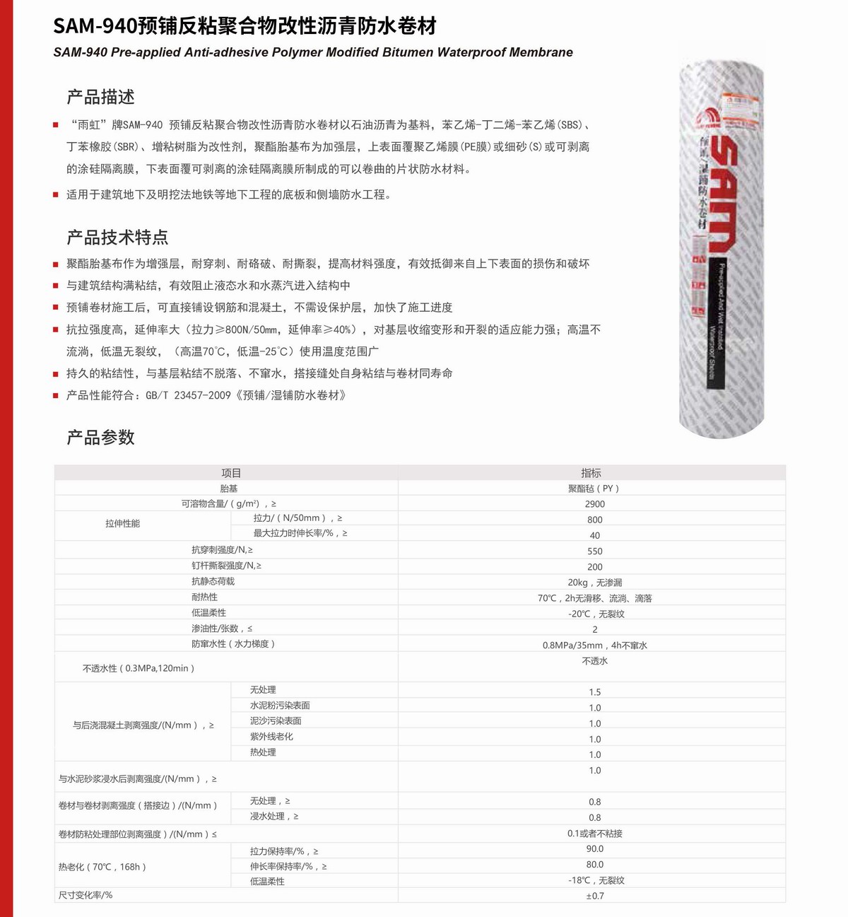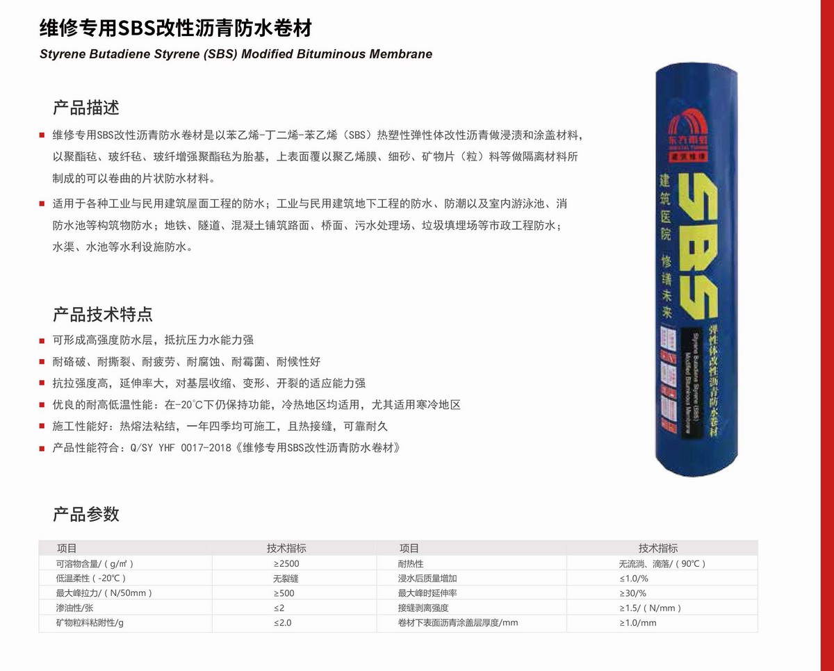 该系列产品是以优质原材料加工生产而成,适用于各种公、民用建筑的屋面工程/地下工程/市政工程等防水、防潮工程。