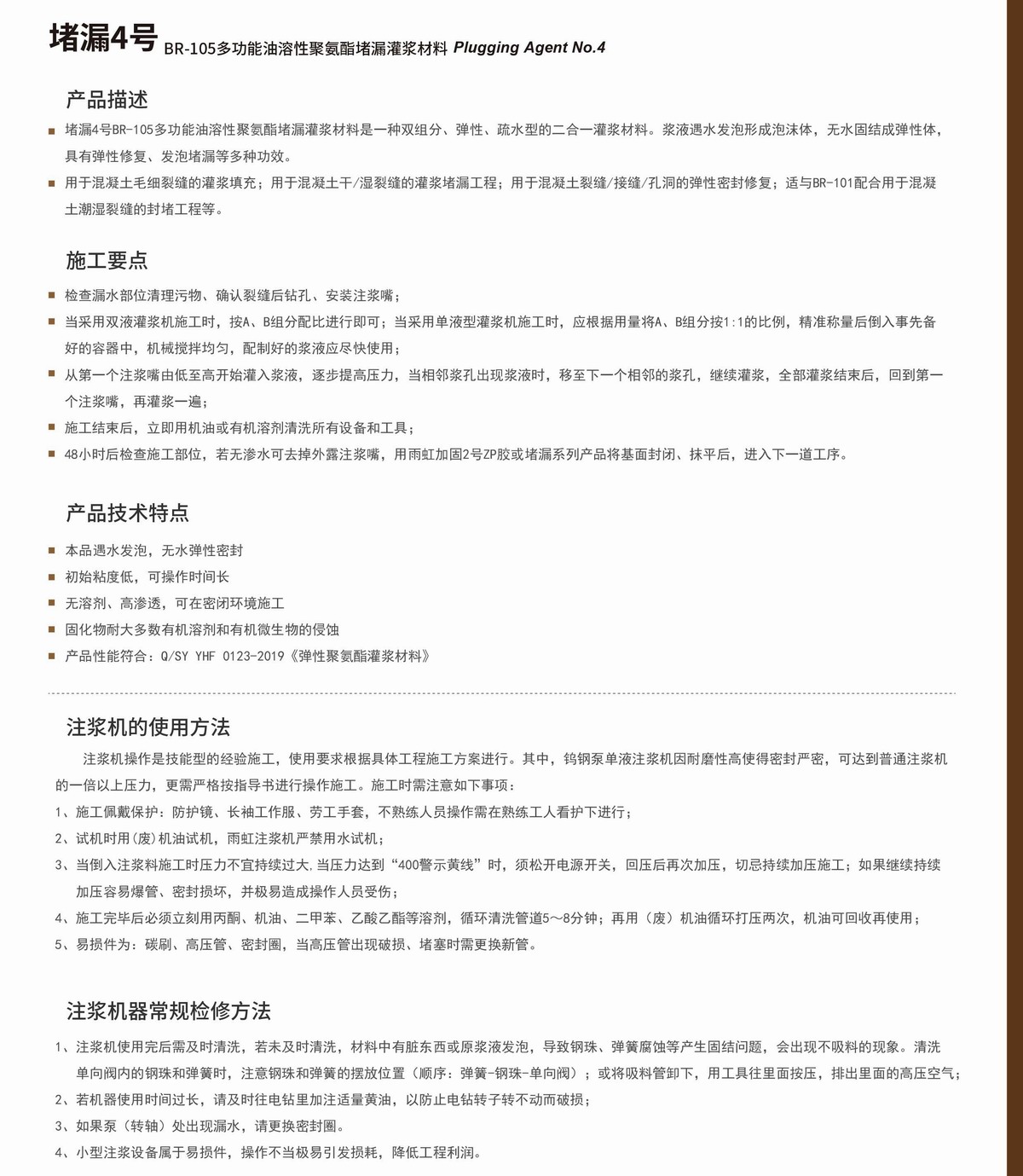 该系列产品是以优质原材料加工生产而成,适用于各种公、民用建筑的涌水封堵、土质改良填充等工程,亦适用于地下工程/堤坝的紧急抢修工程。